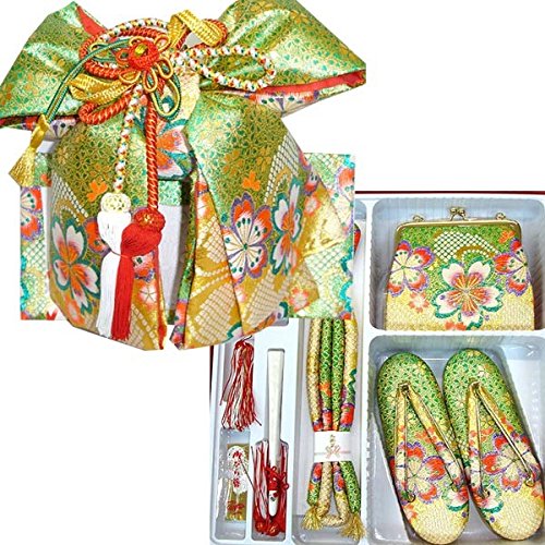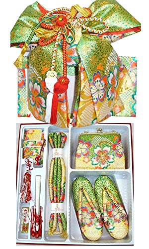 - ◆内容: 結び帯・草履・バッグ・はこせこ・丸ぐけ・扇子・びらかんざし・特製ケース付 (結び帯の飾り紐は画像の色と変わる場合がございます) (結びやたれの部分等の柄は帯地の出かたにより画像と多少変わる場合がございます)