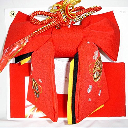 七五三 刺繍(マリ)結び帯 3サイズ5色/L(7歳用) 赤