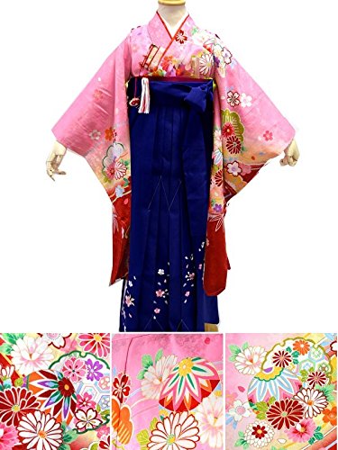 卒園式着物セット四つ身 絵羽柄 四つ身着物・袴トータルフルセット 7タイプ/2(ピンク・雪輪)