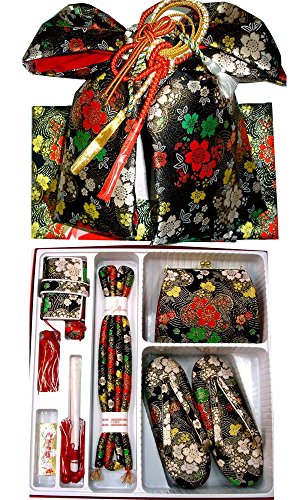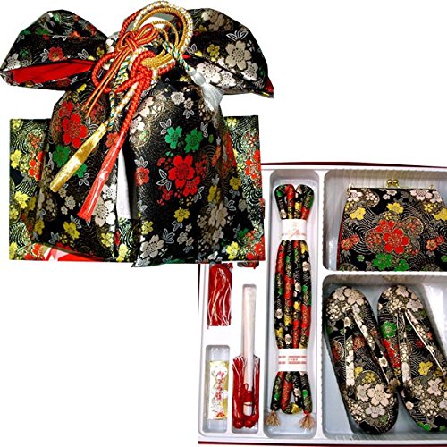 - ◆内容: 結び帯・草履・バッグ・はこせこ・丸ぐけ・扇子・びらかんざし・特製ケース付 (結び帯の飾り紐は画像の色と変わる場合がございます)