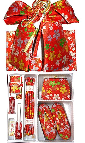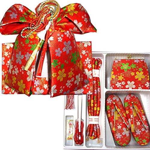 - ◆内容: 結び帯・草履・バッグ・はこせこ・丸ぐけ・扇子・びらかんざし・特製ケース付 (結び帯の飾り紐は画像の色と変わる場合がございます)