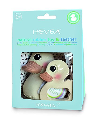 Set includes: Kawan = 3 functions; Kawan is Hevea's first colored toy and is a product of much thought and development. Using natural colors Kawan encourages baby's sensation of touch and stimulates the development of baby's vision. 100% natural rubber, free from phthalates, PVC and BPA. Hand painted with natural plant pigments. Soft, malleable and easy for tiny hands to grasp. Patterned texture on beak and feet, which is ideal for soothing and massaging irritated gums. The elasticity of the rubber makes is perfect to chew on. The color contrast stimulates and encourages the development of baby vision. Floats on water. One-piece design it has no cracks or joints for bacteria to hide in = very hygienic. 5.5"tall - Teeter No harmful chemicals, an adorable face, and designed especially for small hands and textures for relieving teething pains - Kawan teether is a must-have for all babies.100% natural rubber, free from phthalates, PVC, EVAtane, silicone and BPAHand painted with natural plant pigments Texture on beak, feet and neck -ideal for relieving irritated gums The malleable rubber encourages baby's natural gnawing action The color contrast stimulates and encourages the development of baby vision One-piece design - has no cracks or joints which prevents bacteria build-up Soft, light and gentle - easy to hold and chew on for even the smallest hand 3.9" tall.