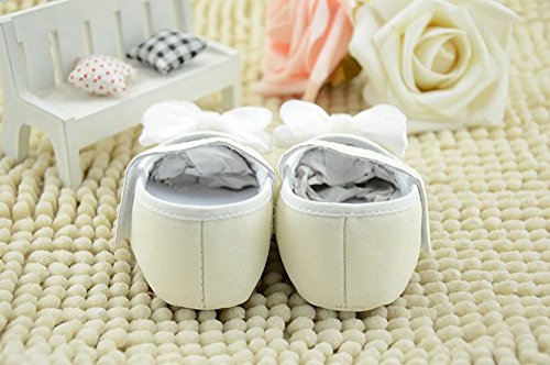 「HIKARE」 ベビーシューズ 女の子 ファーストシューズ フォーマル 蝶結びリボン付 キラキラ スパングル 子供シューズ 乳児靴 柔らかい 軽い コンフォート 発表会 結婚式 入園式 お祝いプレゼント (サイズ:11cm 12cm 13cm) ホワイト 11cm