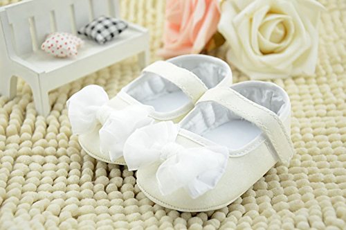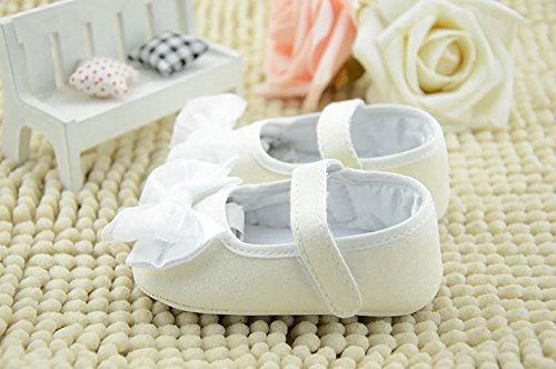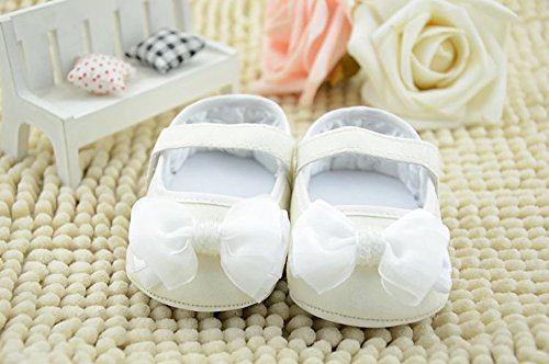 「HIKARE」 ベビーシューズ 女の子 ファーストシューズ フォーマル 蝶結びリボン付 キラキラ スパングル 子供シューズ 乳児靴 柔らかい 軽い コンフォート 発表会 結婚式 入園式 お祝いプレゼント (サイズ:11cm 12cm 13cm) ホワイト 12cm