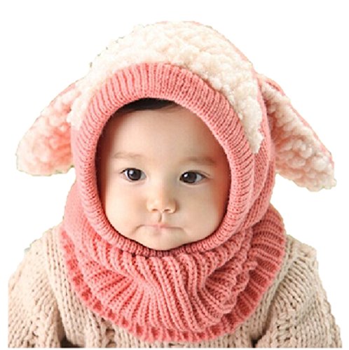 [HKH] キッズ ニット 帽 ネックウォーマー うさ耳 ニット帽 赤ちゃん ベビー 帽子 防寒 子供 衣装 (ピンク)