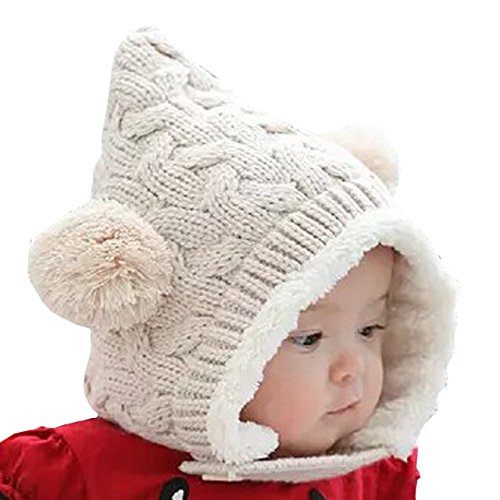 [HKH] キッズ ニット 帽 くま耳 ニット帽 赤ちゃん ベビー 帽子 防寒 子供 衣装 (ベージュ)