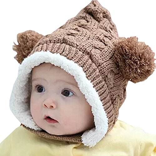 [HKH] キッズ ニット 帽 くま耳 ニット帽 赤ちゃん ベビー 帽子 防寒 子供 衣装 (ブラウン)