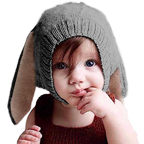 HKH キッズ ニット 帽 うさ耳 ニット帽 赤ちゃん ベビー 帽子 防寒 子供 衣装 (ダークグレー)