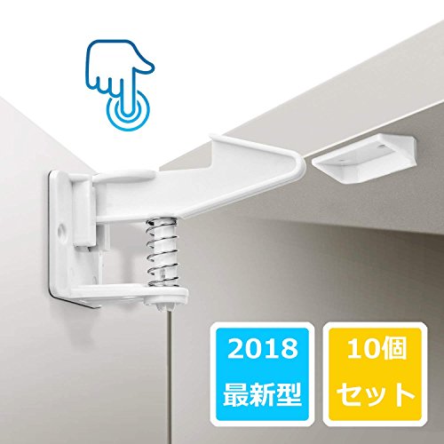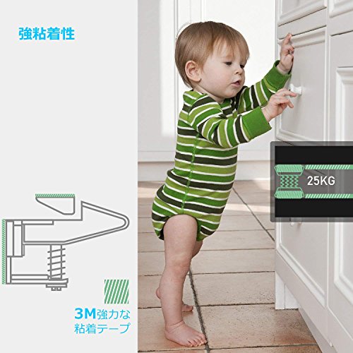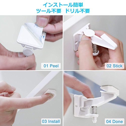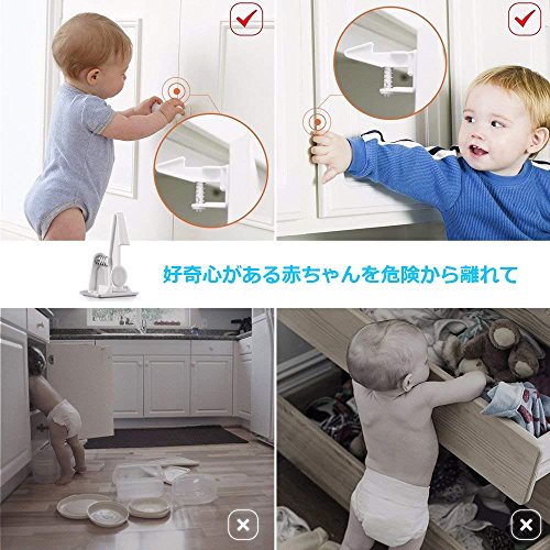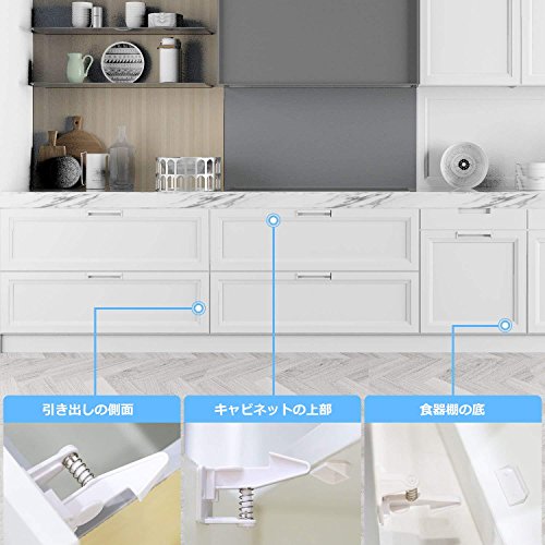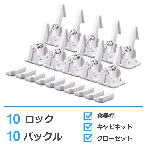 キャビネットロック 引き出しロック(10ロック+10バックル) ベビーガード 取り付け簡単 工具不要 いたずら防止 ケガ防止 子供赤ちゃん守る(ホワイト)