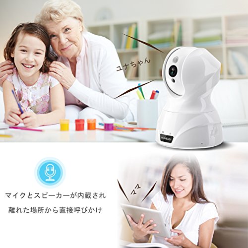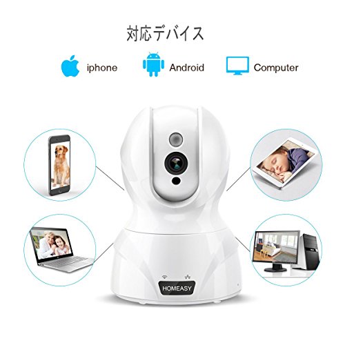 ネットワークカメラ HOMEASY WIFIワイヤレス対応 100W画素 HD暗視撮影 ベビーモニター 動体検知 双方向音声 首振り式 遠隔操作 日本語アプリ 日本語取扱説明書付き iPhone Android mac PC 日本語アプリ対応 ホワイト