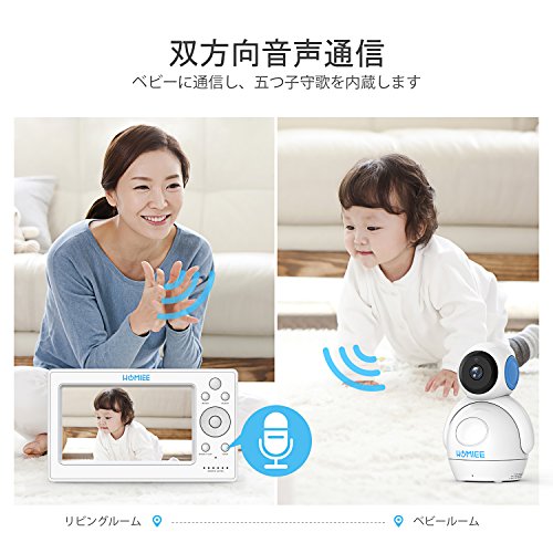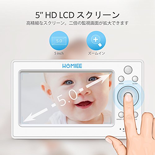 HOMIEE 5"LCDベビーモニター 360°デジタルベビーカメラ 見守りカメラ 遠隔監視カメラ 2.4Gワイヤレス接続 充電式モニター 双方向音声通信 暗視機能 出産祝いプレゼント 日本語取扱説明書付き