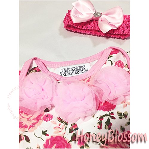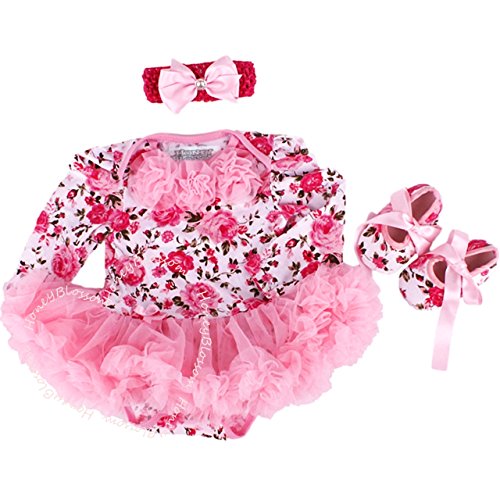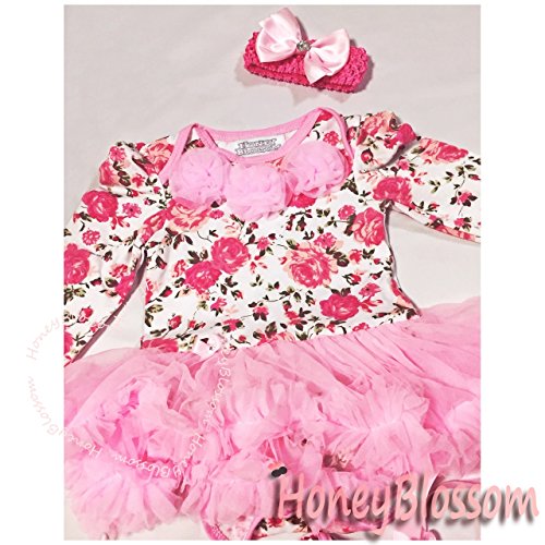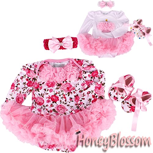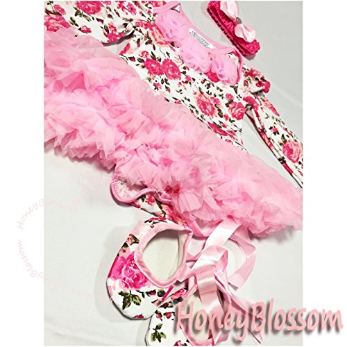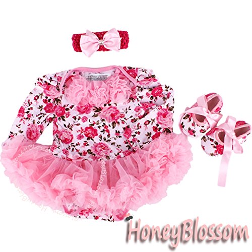 (ハニーブロッサム) HONEY BLOSSOM 可愛い ベビー コスチューム 【 リボン ヘアバンド + チュチュ ロンパース + シューズ 3点 セット 】 赤ちゃん お誕生日 ハーフバースデー メモリアル ドレス 長袖 m007 flower s
