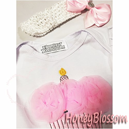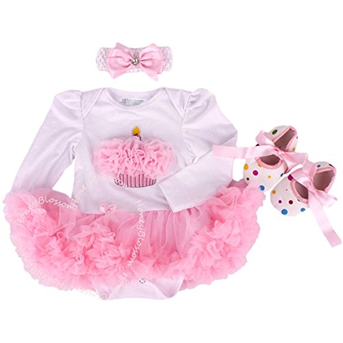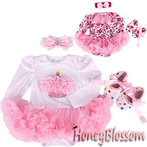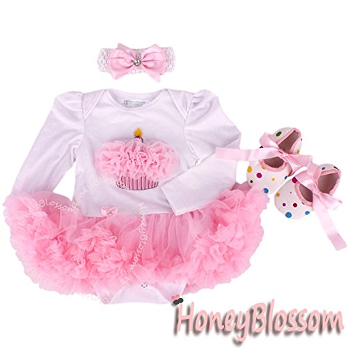 (ハニーブロッサム) HONEY BLOSSOM 可愛い ベビー コスチューム 【 リボン ヘアバンド + チュチュ ロンパース + シューズ 3点 セット 】 赤ちゃん お誕生日 ハーフバースデー メモリアル ドレス 長袖 m007 cake s