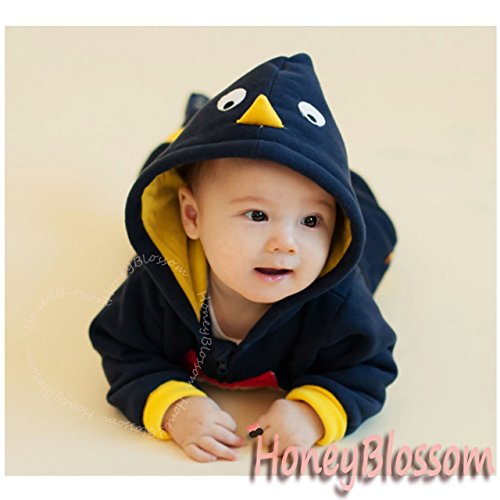 (ハニーブロッサム) HONEY BLOSSOM 可愛い ベビー コスチューム 【 鳥の着ぐるみ ジップアップ カバーオール 】 酉年 赤ちゃん 写真撮り なりきり メモリアル 仮装 衣装 フクロウ ペンギン ヒヨコ tm207 navyblue 70
