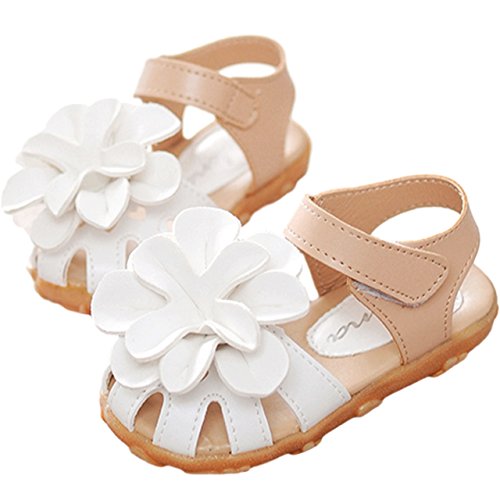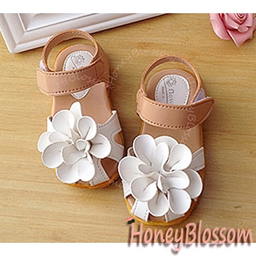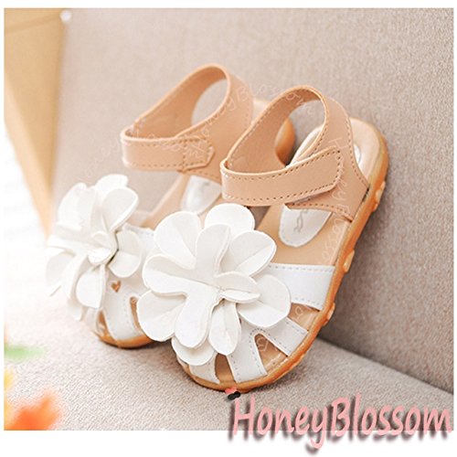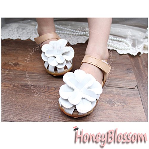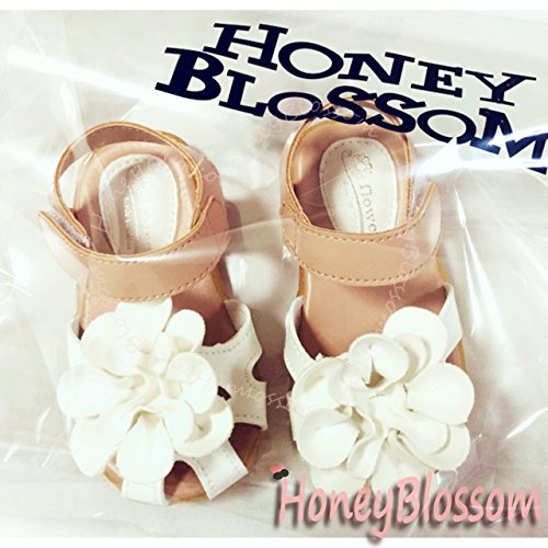 【Dream-studio】可愛い ベビー 女の子 サンダル つま先 保護 お花 モチーフ 各サイズ 赤 黒に近いネイビー ピンク 白 (サイズ22/13.5㎝, 白)