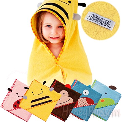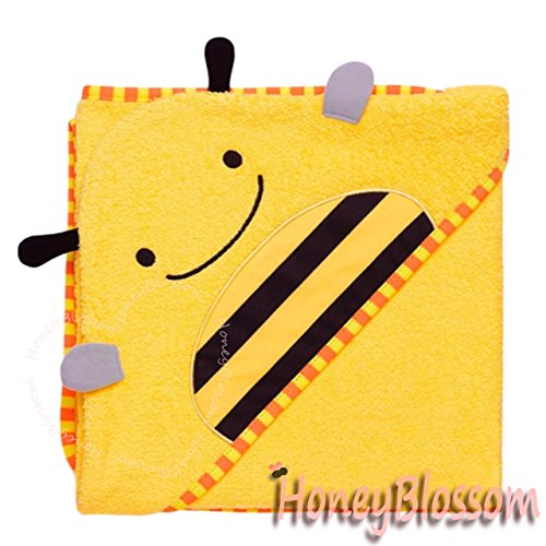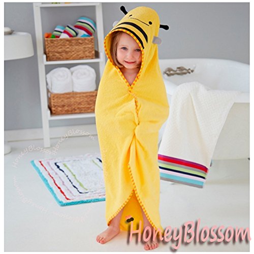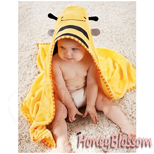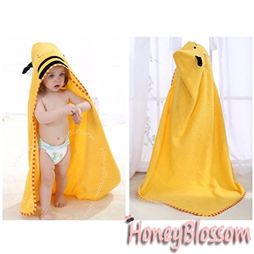 (ハニーブロッサム) HONEY BLOSSOM ベビー アニマル パイル おくるみ バスローブ 動物 お顔 と 耳 付き フード ポンチョ マント タオル地 出産祝い プレゼント A001 yellow