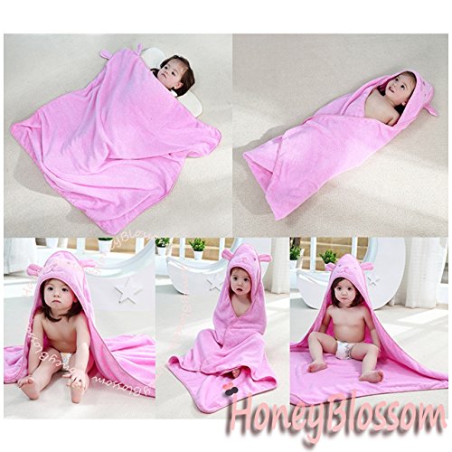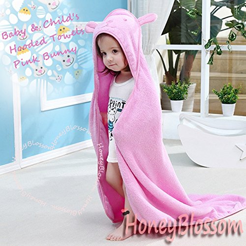 HONEY BLOSSOM ベビー & キッズ うさぎ パイル おくるみ バスローブ フード付き バスタオル m020 pink
