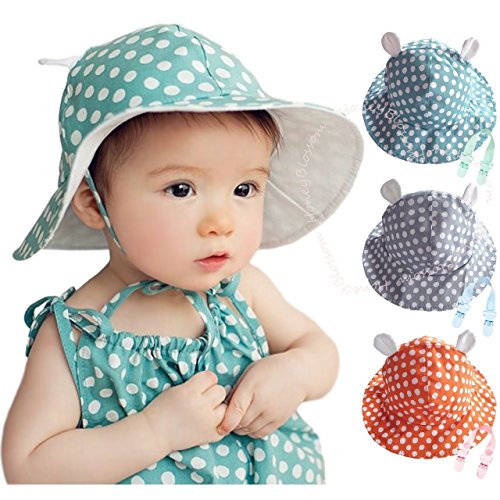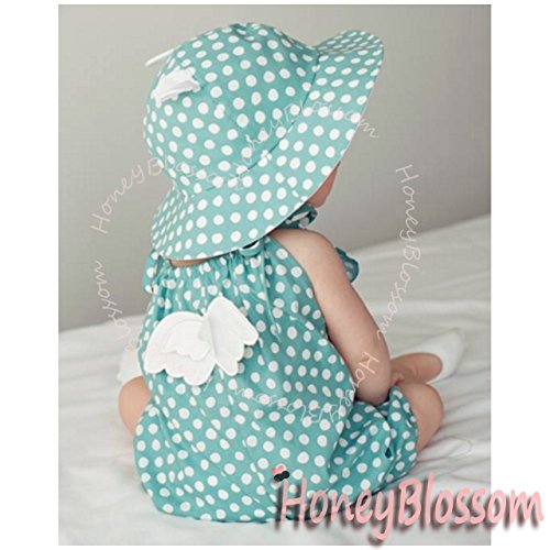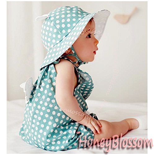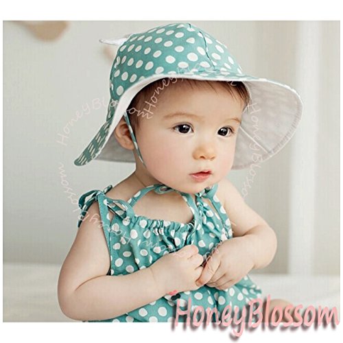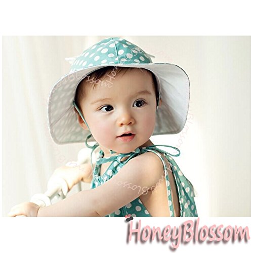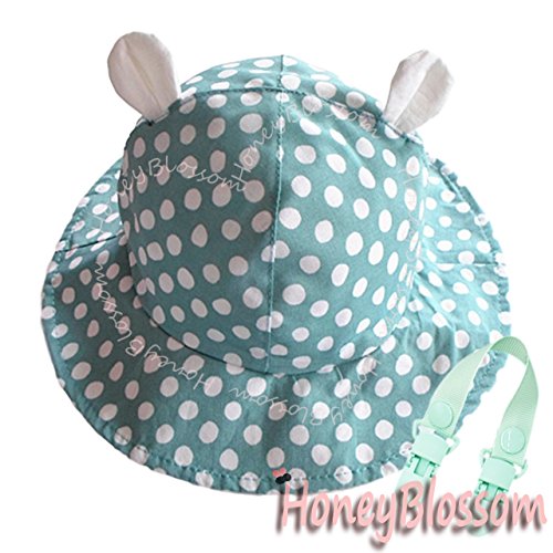(ハニーブロッサム) HONEY BLOSSOM 赤ちゃん 紫外線対策 グッズ 【 ドット柄 ベビー コットンハット 】 可愛い くま耳 付き つば広 綿素材 日よけ 帽子 + クリップ 12 - 24 ヵ月 tm101 bluegreen