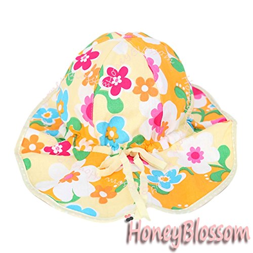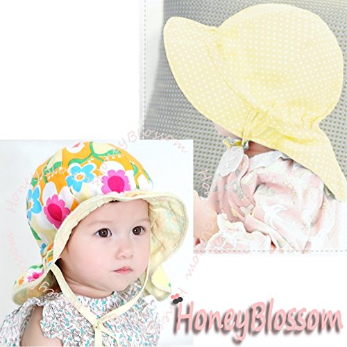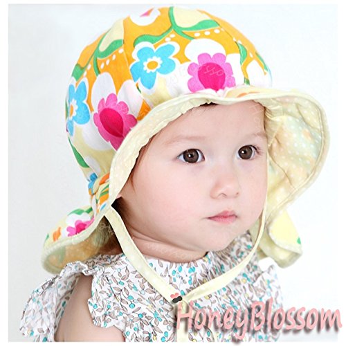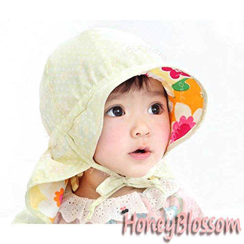 HONEY BLOSSOM リバーシブル ベビー フラップ ハット 赤ちゃん 紫外線対策 花柄 綿 帽子 m102 yellow