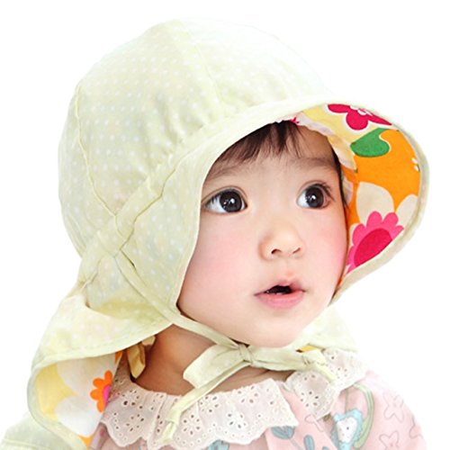 - ワンピースなどの よそ行き服にも、Tシャツやパンツなどのカジュアル服にもお似合いな、お洒落デザイン。敏感肌の赤ちゃんやお子様に是非お勧めしたい、紫外線対策 日除け予防 UV防止 グッズです。広めのつばと首回りを後ろまでしっかりカバーするロングフラップが、赤ちゃんのお肌を強い日差しから守ってくれます。共布のストラップもお洒落。リボン結びにすると帽子が風に飛びにくく安心です。