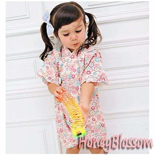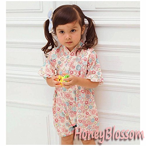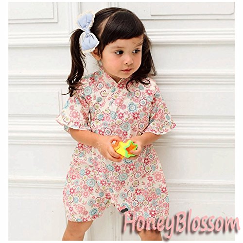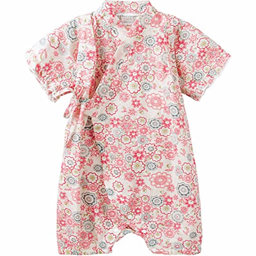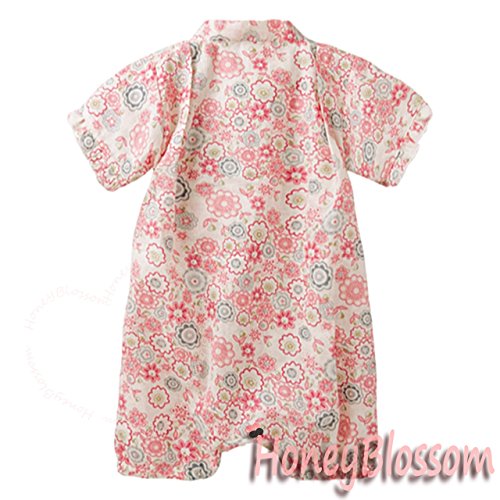 HONEYBLOSSOM ベビー 甚平 ショートオール ロンパース ピンク 90b