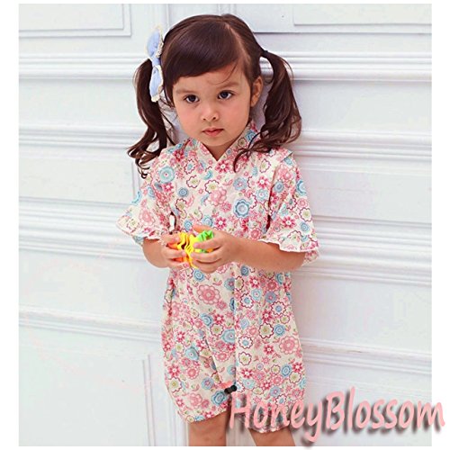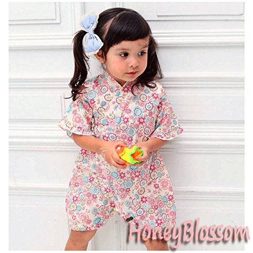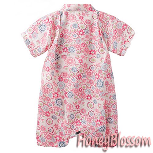 (ハニーブロッサム) HONEY BLOSSOM 【 ベビー 甚平 浴衣風 ショートオール & ロンパース 】可愛い 花柄 お洒落 マリン 柄 女の子 男の子 夏 和装 ベビー服 出産祝い ギフト 70 - 90 3ヵ月 - 2歳 前後 ピンク 80b