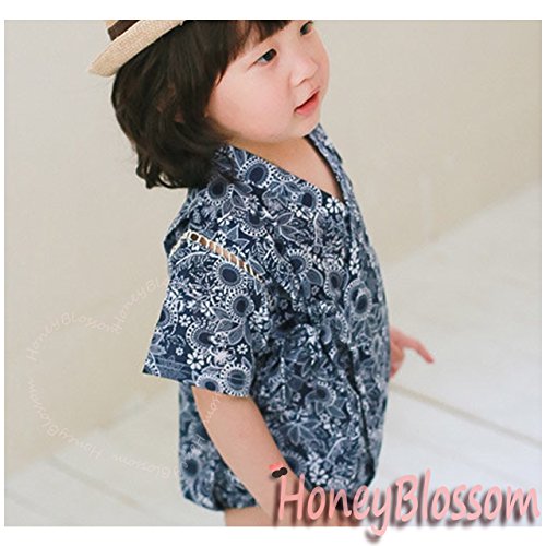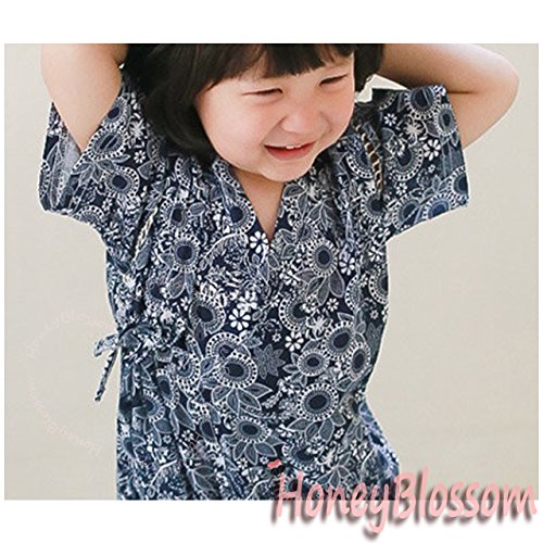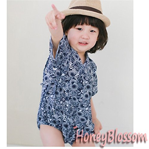 HONEYBLOSSOM ベビー 甚平 ショートオール ロンパース ネイビー 80