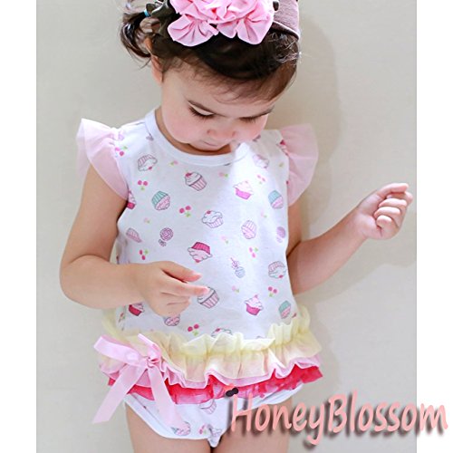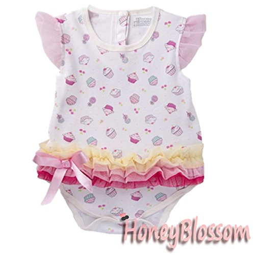 HONEY BLOSSOM ベビー 【 ラブリー チュチュ ロンパース 】 綿素材 可愛い 総柄 フリル レース ハーフバースデー コスチューム ギフト ベビー服 M005 pinkcake90