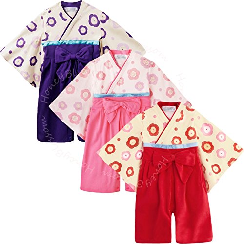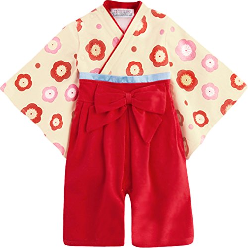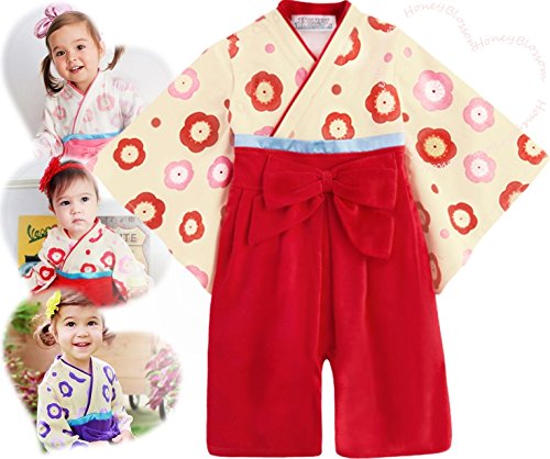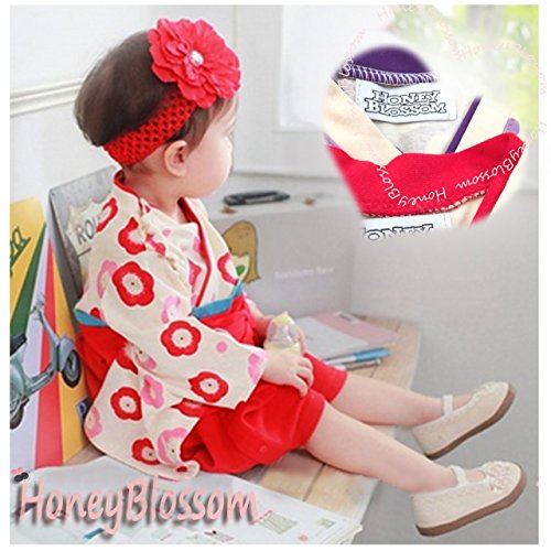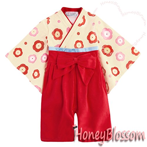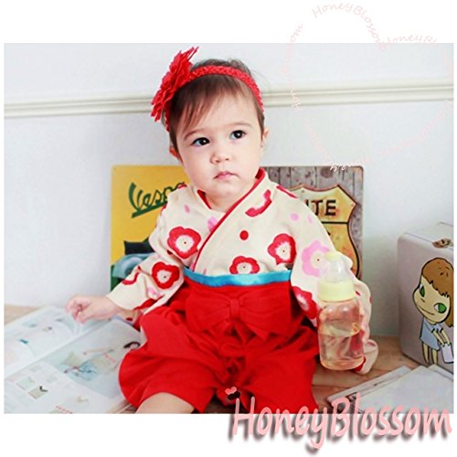 (ハニーブロッサム) HONEY BLOSSOM ベビー 【 きもの風 和装 カバーオール 】 高品質 柔らか 綿100% 女の子 赤ちゃん ベビー服 初節句 ひな祭り お食い初め 御百日祝い お正月 可愛い 着物 袴 衣装 人気 ベビー用品 0 - 2 歳 M006 red-70