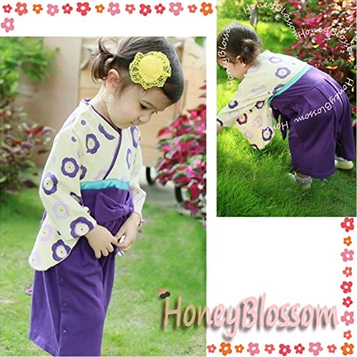 (ハニーブロッサム) HONEY BLOSSOM 【 【【 きもの風 和装 カバーオール 】】 】 紅 梅 藤色 高品質 綿100% 柔らか 女の子 着物 きもの 袴 はかま 前開き 全開 ベビー服 桃の節句 ひな祭り お食い初め 御百日祝い お正月 年賀 写真 可愛い 着物姿 結婚式 出産祝い M006 Purple-80