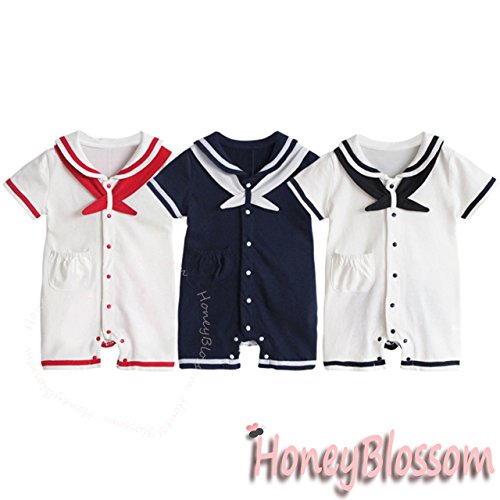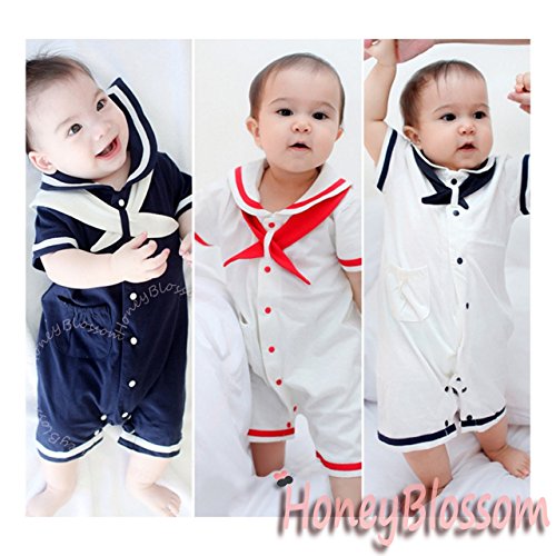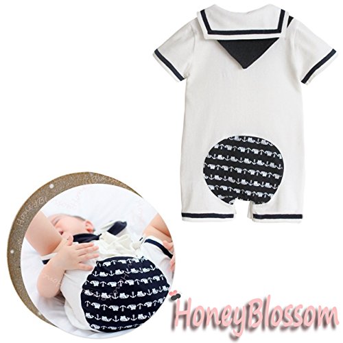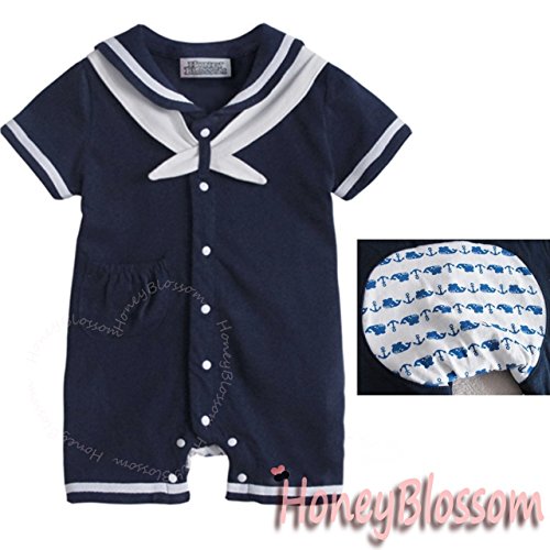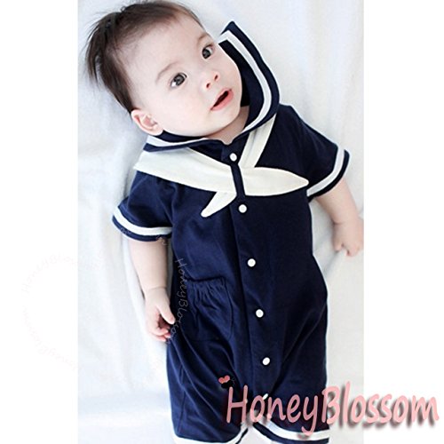 HONEY BLOSSOM ベビー 【 セーラー カラー マリン ショートオール 】 綿 半袖 カバーオール ハーフバースデー フォーマル 衣装 ギフト M010 navyblue-90