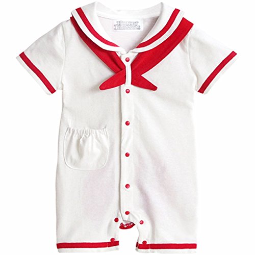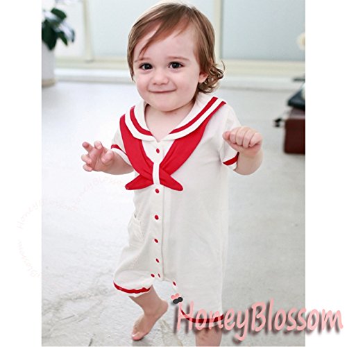 (ハニーブロッサム) HONEY BLOSSOM ベビー 可愛い 水兵さん 【 セーラー カラー マリン ショートオール 】 ハーフバースデー ベビーフォーマル 半袖 モンキーパンツ カバーオール 男の子 女の子 人気 夏 ベビー服 出産祝い ギフト プレゼント M010 redwhite-70