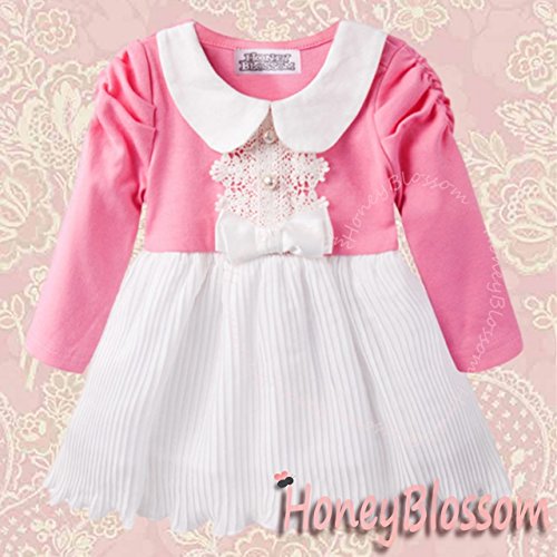 (ハニーブロッサム) HONEY BLOSSOM ベビー 【 清楚 ふわふわ プリーツ ワンピース 】 お姫様 ワンピ風 ロンパース ハーフバースデー 誕生日 結婚式 女の子 セレモニー ドレス フォーマル ウェア 0 - 2 歳 前後 m013 pink 90cm