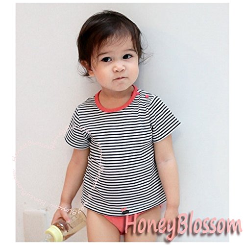 (ハニーブロッサム) HONEY BLOSSOM 【 Tシャツ 風 ロンパース 】 綿混紡 柔らか素材 お腹が出ない 半袖 Tオール ボディースーツ ボーダー 柄 男の子 女の子 赤ちゃん 可愛い ベビー服 0歳 から 2歳 ぐらい m119 NborderR 90