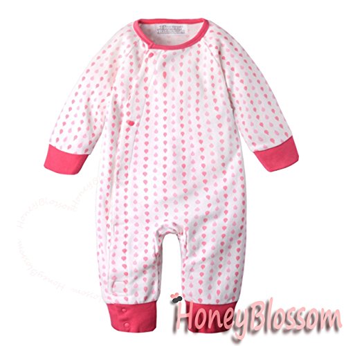 (ハニーブロッサム) HONEYBLOSSOM ベビー 【 可愛い 総柄 カバーオール 】 前開き 長袖 綿 ベビー服 パジャマ 人気 ベビー用品 m017 (70, ピンク*花びら柄)