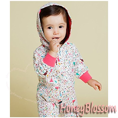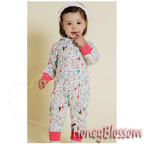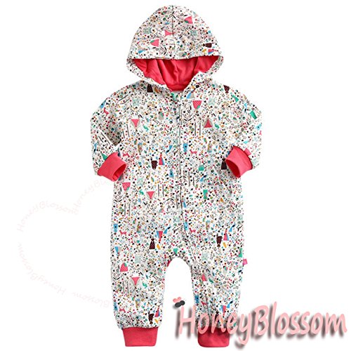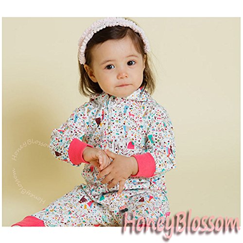 (ハニーブロッサム) HONEYBLOSSOM ベビー 【 可愛い 総柄 フーディ― カバーオール 】 前開き ジップアップ 長袖 綿 ベビー服 女の子 赤ちゃん 0 - 1 歳 ぐらい m201 pink-70