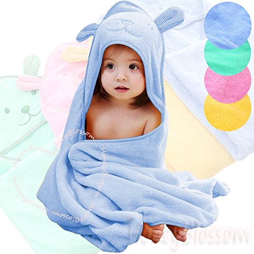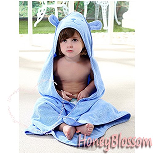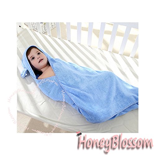(ハニーブロッサム) HONEY BLOSSOM ベビー & キッズ 【 うさぎ パイル おくるみ バスローブ 】 可愛い アニマル デザイン 耳 フード 付き 大判 バスタオル 女の子 男の子 人気 ベビー用品 90 × 90 cm 0 - 3歳 ぐらい m020 blue