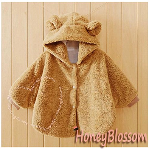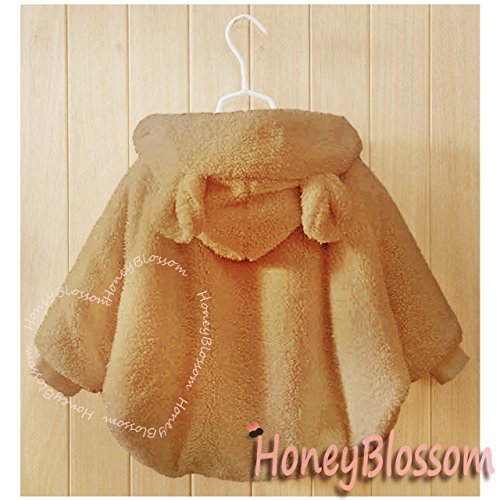 HONEY BLOSSOM ベビー くま耳 フーディ ポンチョ 着ぐるみ風 ボア フリース ジャケット m205 brown