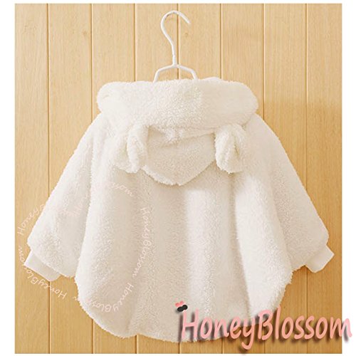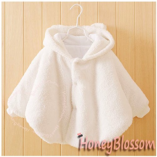 HONEY BLOSSOM ベビー くま耳 フーディ ポンチョ 着ぐるみ風 ボア フリース ジャケット m205 white