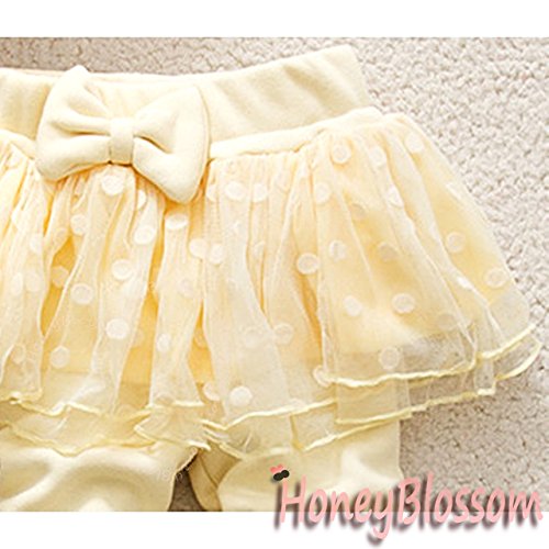 HONEY BLOSSOM ベビー & キッズ リボン ドット チュール 綿素材 裏起毛 スカッツ m212 yellow 80