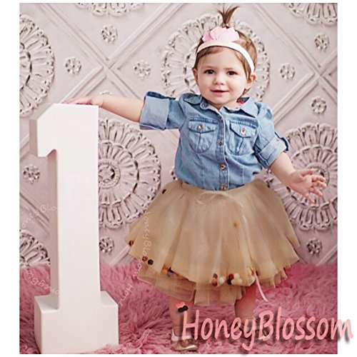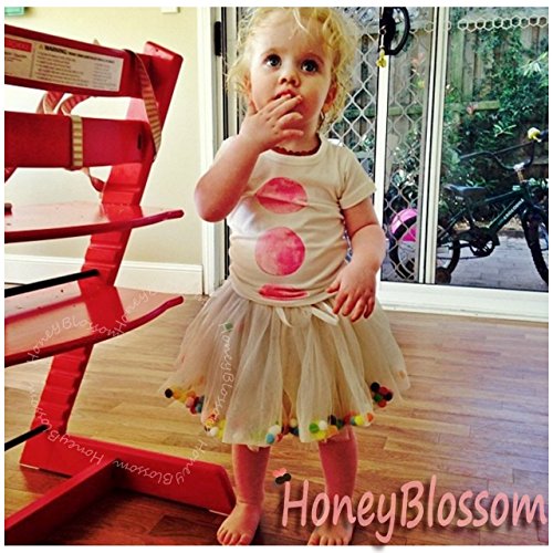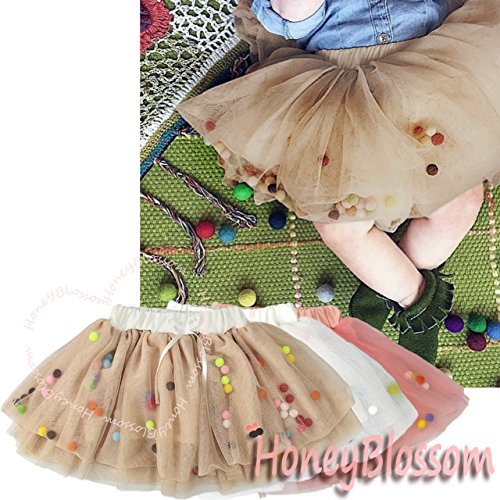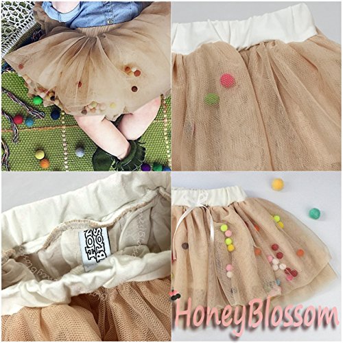 HONEY BLOSSOM ポンポン & リボン ラブリー チュチュ キッズ ドレス スカート m002 beige 90