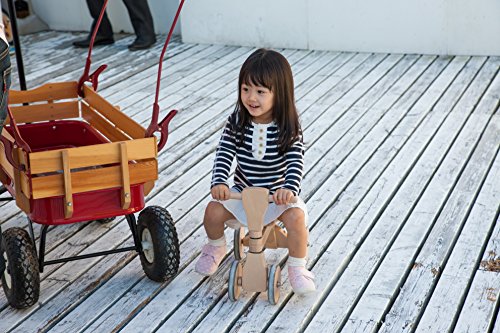 ファーストウッディバイクは、あたたかみあふれる木製。古来から人は木とともに生活し、木のおもちゃで遊んだり、木登りをしてみたり、木のテーブルや椅子を使うなど、木のぬくもりを感じながら生きてきました。欧米諸国では子どもの豊かな心を育むとして、木のおもちゃがとても人気。木製の4輪バイクなら、木のぬくもりを感じながら、体全体を使って遊べますね♪楽しみながら足腰も丈夫に!