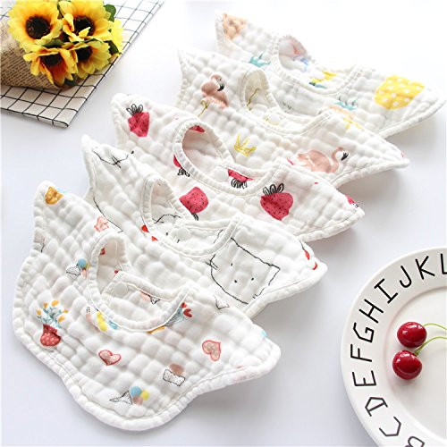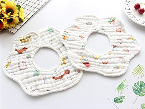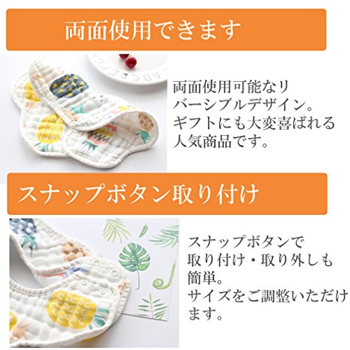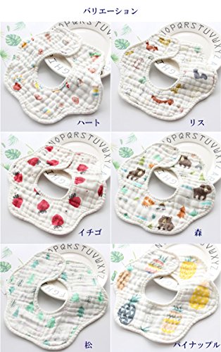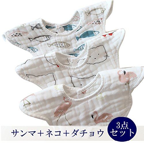 HORARA 8重カーぜ 綿100% ベビー ビブ よだれかけ 花びら型 (サンマ/ネコ/ダチョウ、3点セット)
