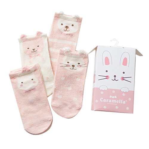 HORARA 子供 ソックス キッズ 靴下 綿100% スニーカーソックス かわいい 動物柄 吸湿速乾 抗菌 防臭加工(ウサギ柄 4足 セット、L(5~8歳))