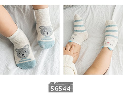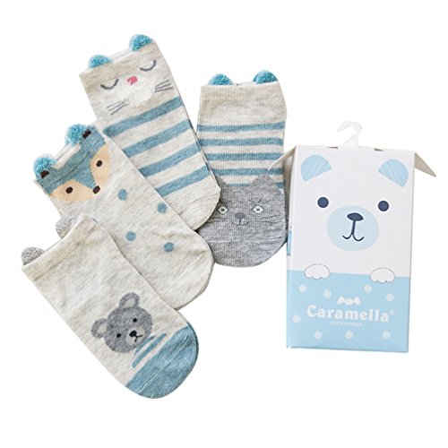 HORARA 子供 ソックス キッズ 靴下 綿100% スニーカーソックス かわいい 動物柄 吸湿速乾 抗菌 防臭加工(ブルークマ柄 4足 セット、L(5~8歳))