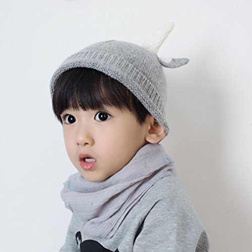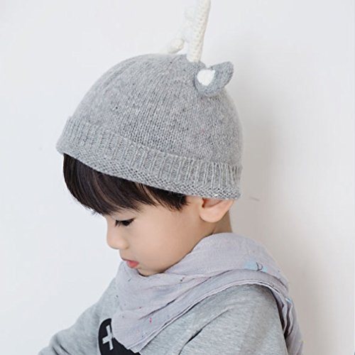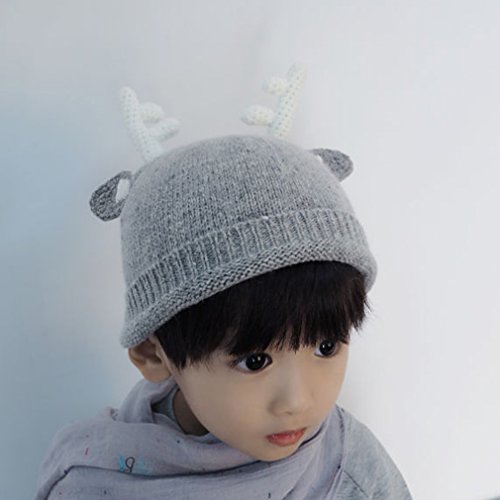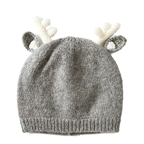 (ホララ)Horara ニット帽 ベビー キッズ シカ トナカイ 可愛い シカさん クリスマス 女の子 男の子(グレー、S(頭囲42~46cm))