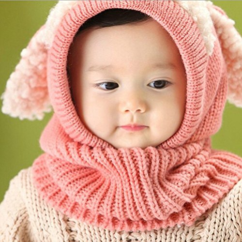 (ホララ)Horara ニット帽 ベビー キッズ ヒツジ耳 ボアつき 女の子 男の子(ピンク、フリー)
