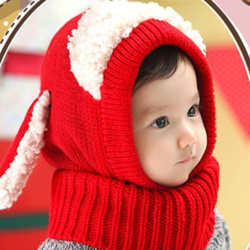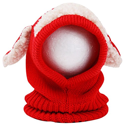 (ホララ)Horara ニット帽 ベビー キッズ ヒツジ耳 ボアつき 女の子 男の子(レッド、フリー)
