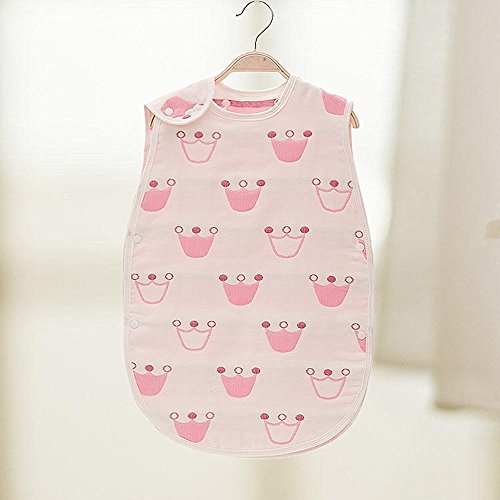 (ホララ)Horara 6重ガーゼ ベビー スリーパー 秋冬用 パジャマ 寝袋 オーガニックコットン 70cm-120cm(クラウン柄 ピンク L)