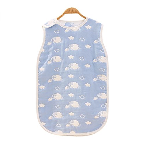 (ホララ)Horara 6重ガーゼ ベビー スリーパー オールシーズン パジャマ 寝袋 オーガニックコットン 85cm-105cm (ブルー綿羊柄、L)